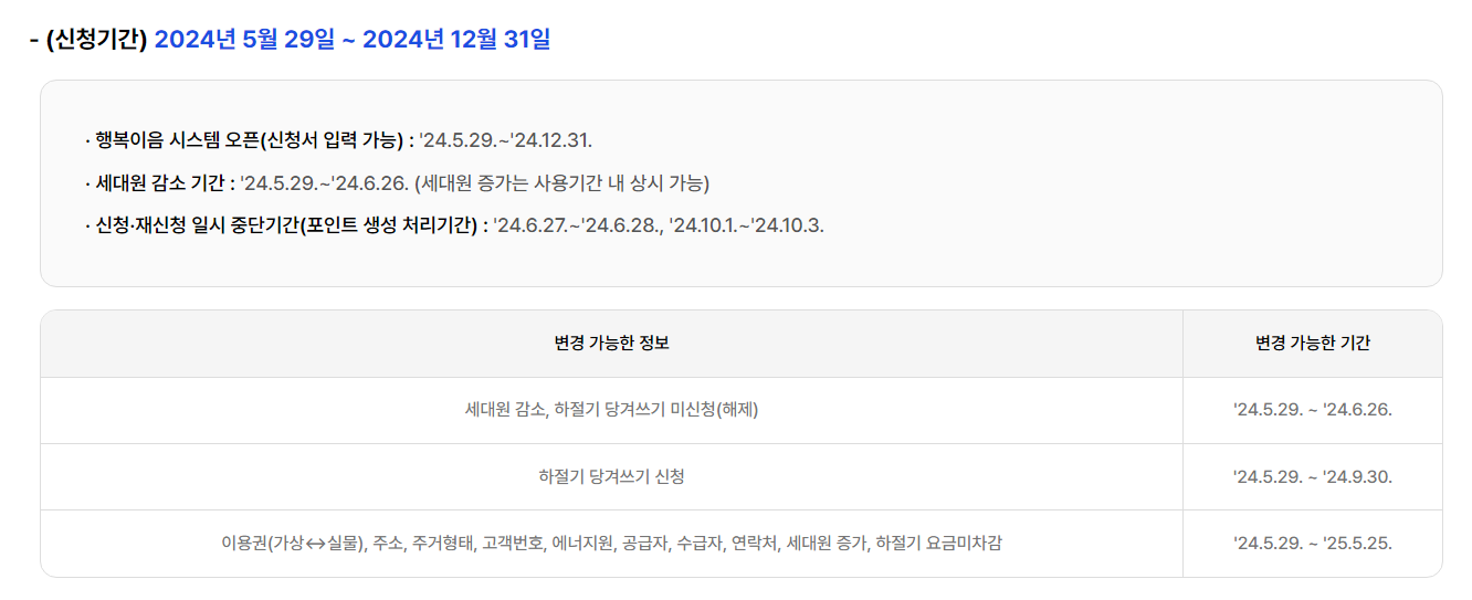 계절별 신청방법 : 하절기는 요금차감만 가능하고 동절기는 요금차감 또는 국민행복카드 선택 가능합니다.