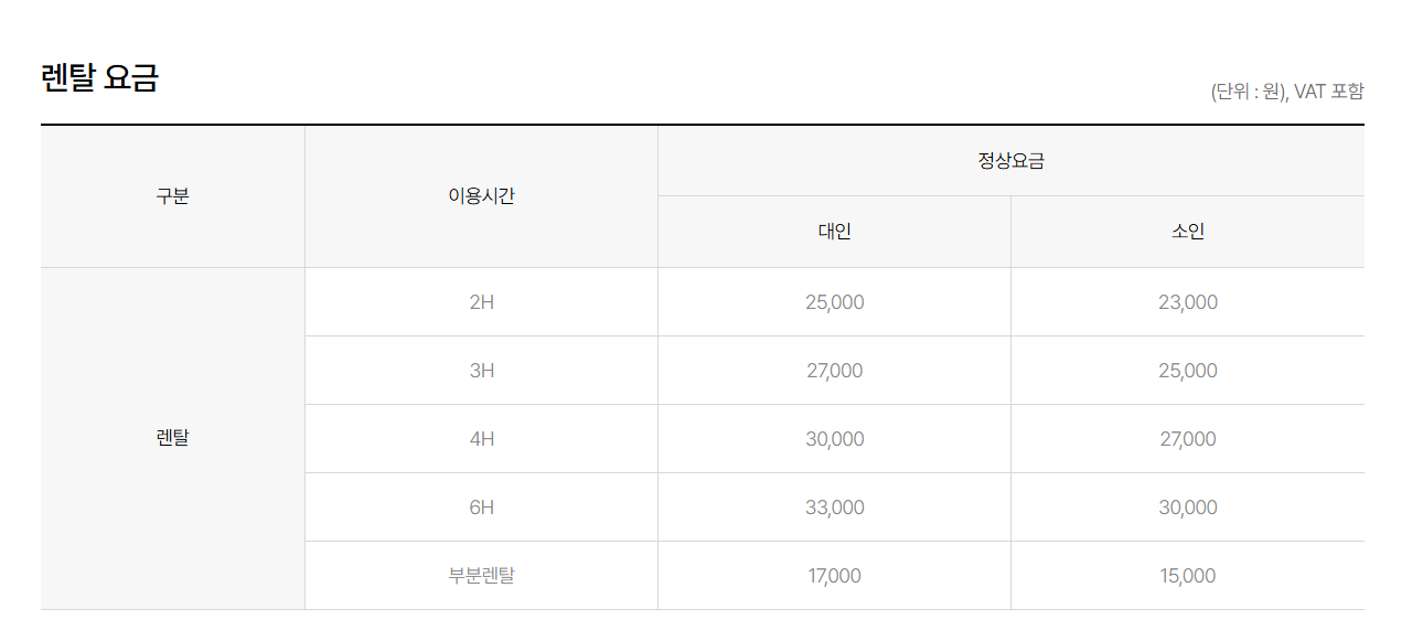 * 의류렌탈은 렌탈하우스에서 별도로 가능합니다
