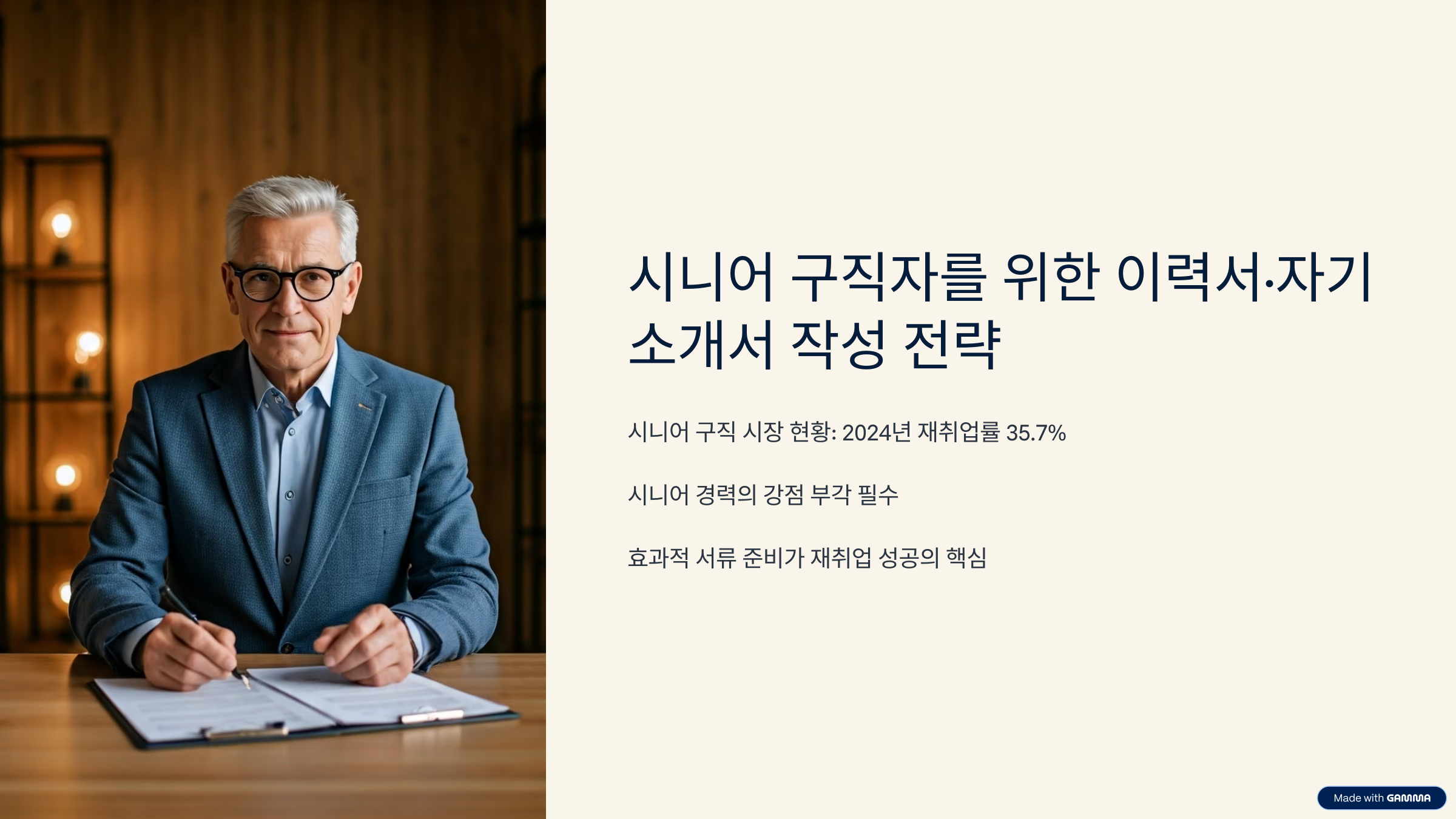 시니어 구직은 '다시 시작하는 도전'입니다. 이력서와 자기소개서는 그 도전의 첫 문입니다. 나이보다 중요한 건 나의 태도와 경험을 어떻게 풀어내느냐입니다. 당신의 삶은 누군가에게 큰 힘이 될 수 있습니다. 이제, 그것을 자신 있게 글로 표현해보세요.