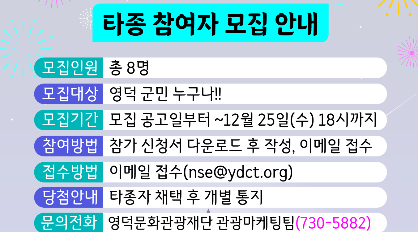 더 자세한 정보는 영덕문화관광재단 공지사항을 참고하시기 바랍니다.