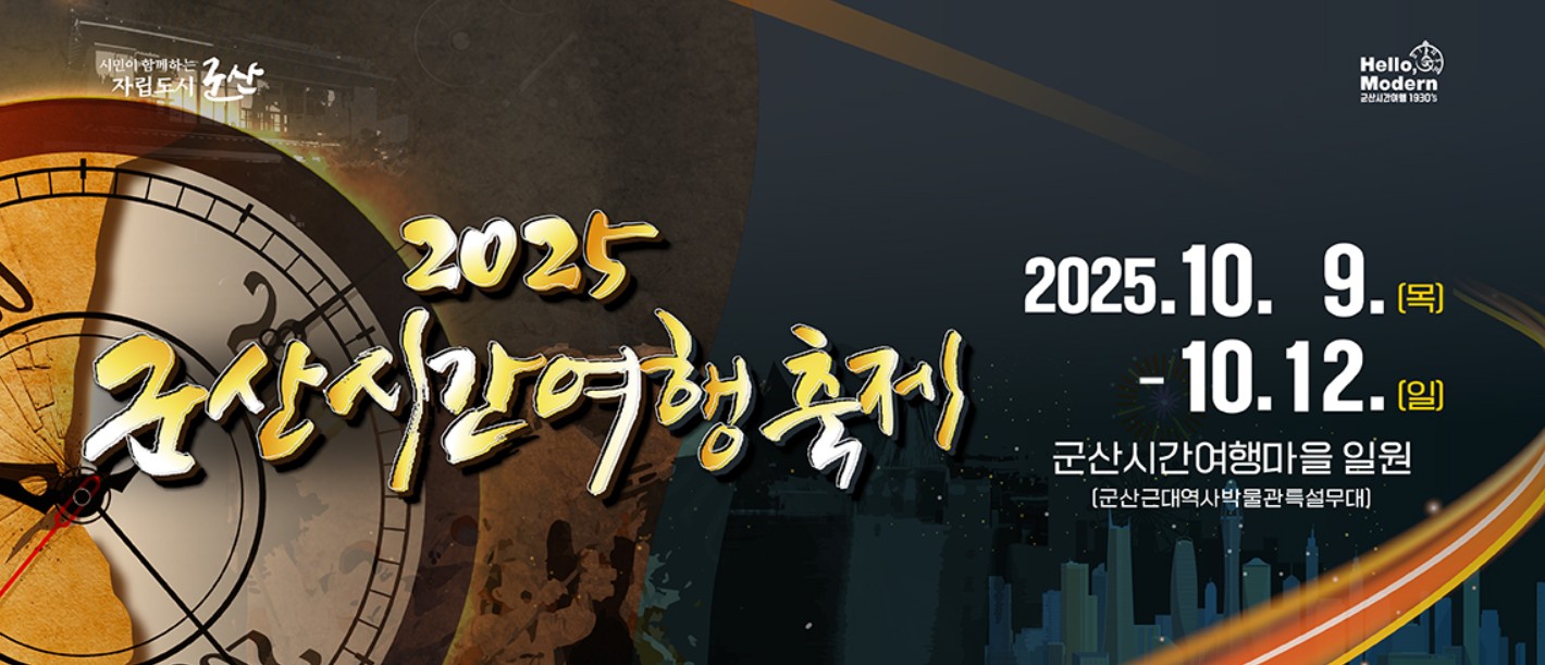 2025년 10월 9일부터 12일까지, 전라북도 군산에서는 군산시간여행축제가 군산근대역사박물관 인근 시간여행마을 일대에서 펼쳐집니다. ‘군산의 진짜 시간여행’이라는 주제로, 개항기부터 미래까지의 이야기를 공간과 프로그램으로 연결하는 축제입니다.