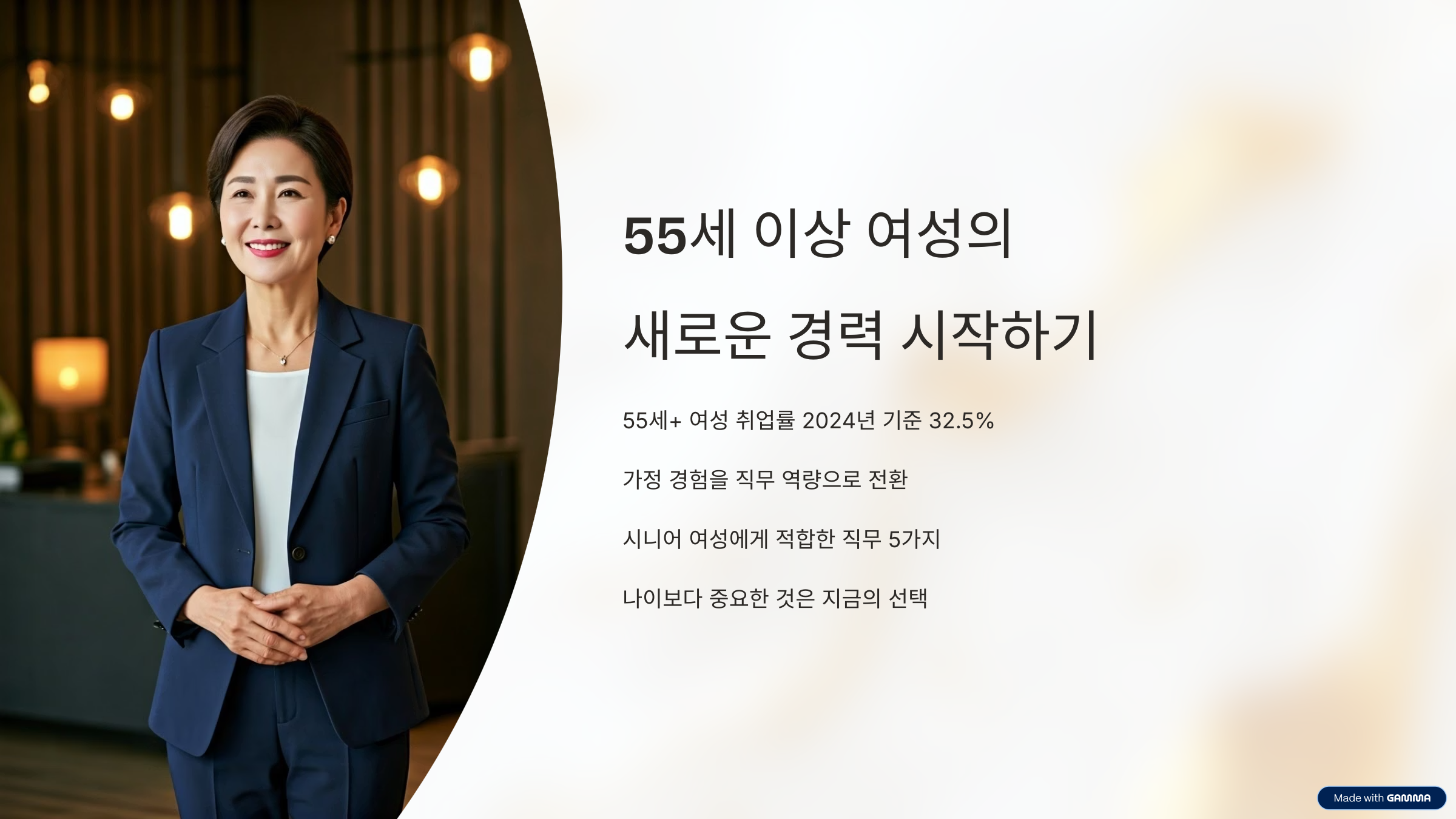 당신의 손끝, 말투, 눈빛 속에는 그동안 쌓아온 인생의 깊이가 있습니다. 지금 그 경험이 필요한 곳은 분명히 있습니다.